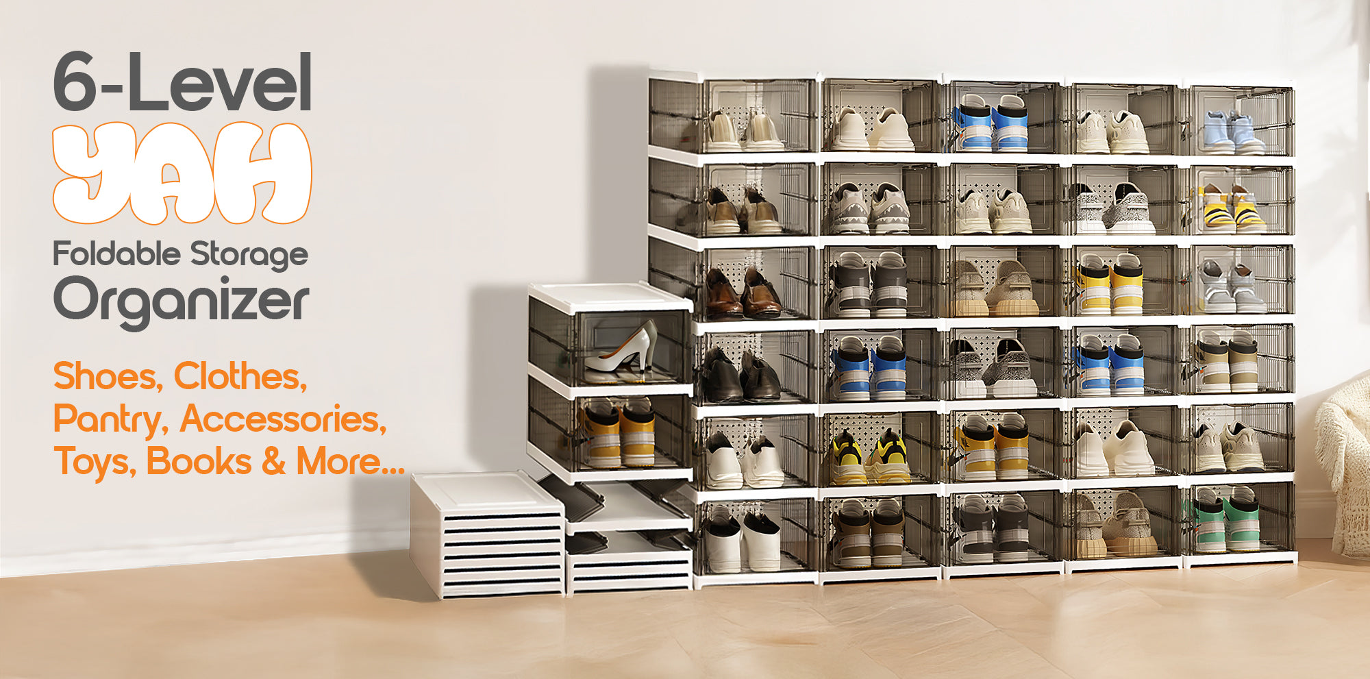 6-Level / YAH Foldable Storage Organizer – Transparent Gray