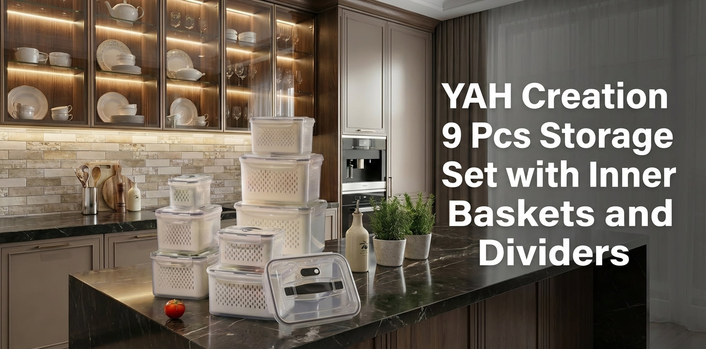 YAH XL Smart Kitchen Storage Boxes - Airtight, Microwave & Freezer Safe. Fridge & Pantry Organizers - Durable Containers - Draining Baskets & Dividers