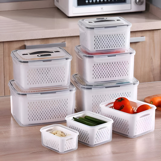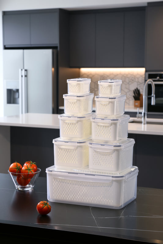 YAH XL Smart Kitchen Storage Boxes - Airtight, Microwave & Freezer Safe. Fridge & Pantry Organizers - Durable Containers - Draining Baskets & Dividers