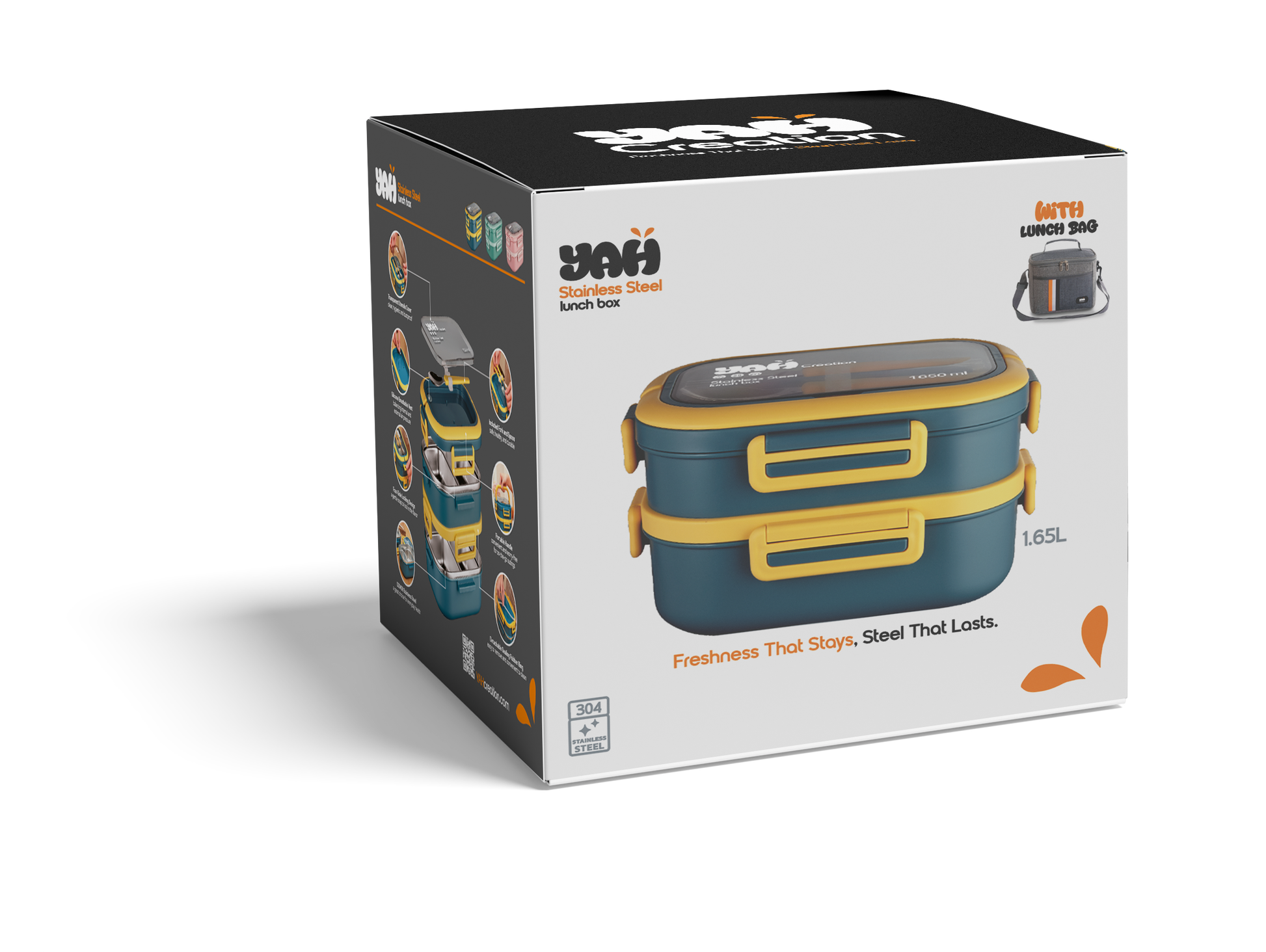Savor fresh and healthy meals wherever you go with the Yah Premium 2-Layer Stainless Steel Bento Box.